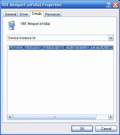 Installation note 4: By default, any Plug'n'Play video cards will be detected CORRECTLY by 2000/XP/2003 version of my driver. But if you wish, you MAY add your video card's PCI VENDOR/DEVICE ID in vbemppnp.inf so your card will named as it is or you can select the driver manually when Windows firstly find an unknown device. This is an optional operation!
